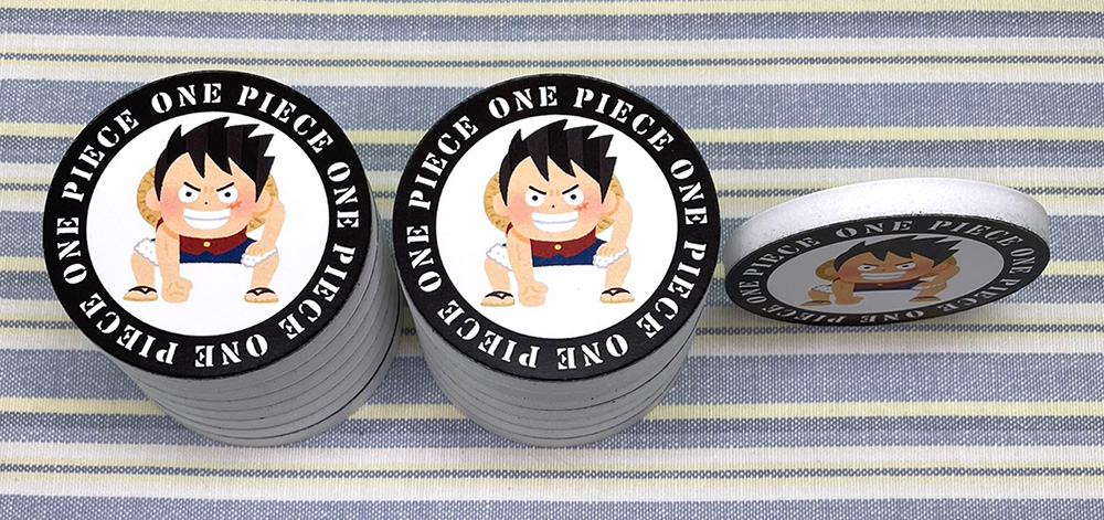 丸にカットするので絵柄外側は四角のベタ塗りつぶしとしてください。ギリギリで丸絵柄の場合カット誤差で余白が出る場合があります。 - 正方形